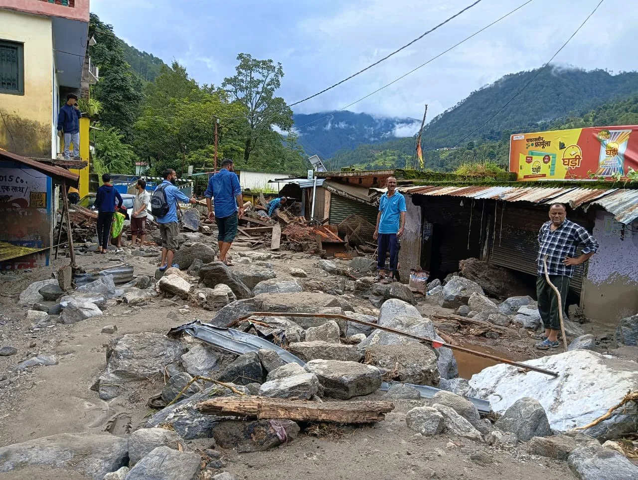हरमनी से थराली तक कई स्थानों पर सड़कें बंद हैं और 15 से अधिक दुकानें क्षतिग्रस्त हुई हैं। डीएम संदीप तिवारी ने मौके का निरीक्षण कर अधिकारियों को राहत-बचाव कार्य तेज करने के निर्देश दिए।
