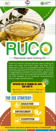 खाद्य सुरक्षा सुनिश्चित करने के लिए प्रशासन ने ‘री-पर्पज यूज़्ड कुकिंग ऑयल’ (RUCO) योजना भी लागू की है। इसके तहत बार-बार इस्तेमाल किए गए तेल की निगरानी की जा रही है ताकि वह दोबारा खाद्य श्रृंखला में प्रवेश न कर सके। प्रयुक्त तेल को एकत्र कर बायोडीजल, साबुन और अन्य गैर-खाद्य उत्पादों में परिवर्तित किया जाएगा।